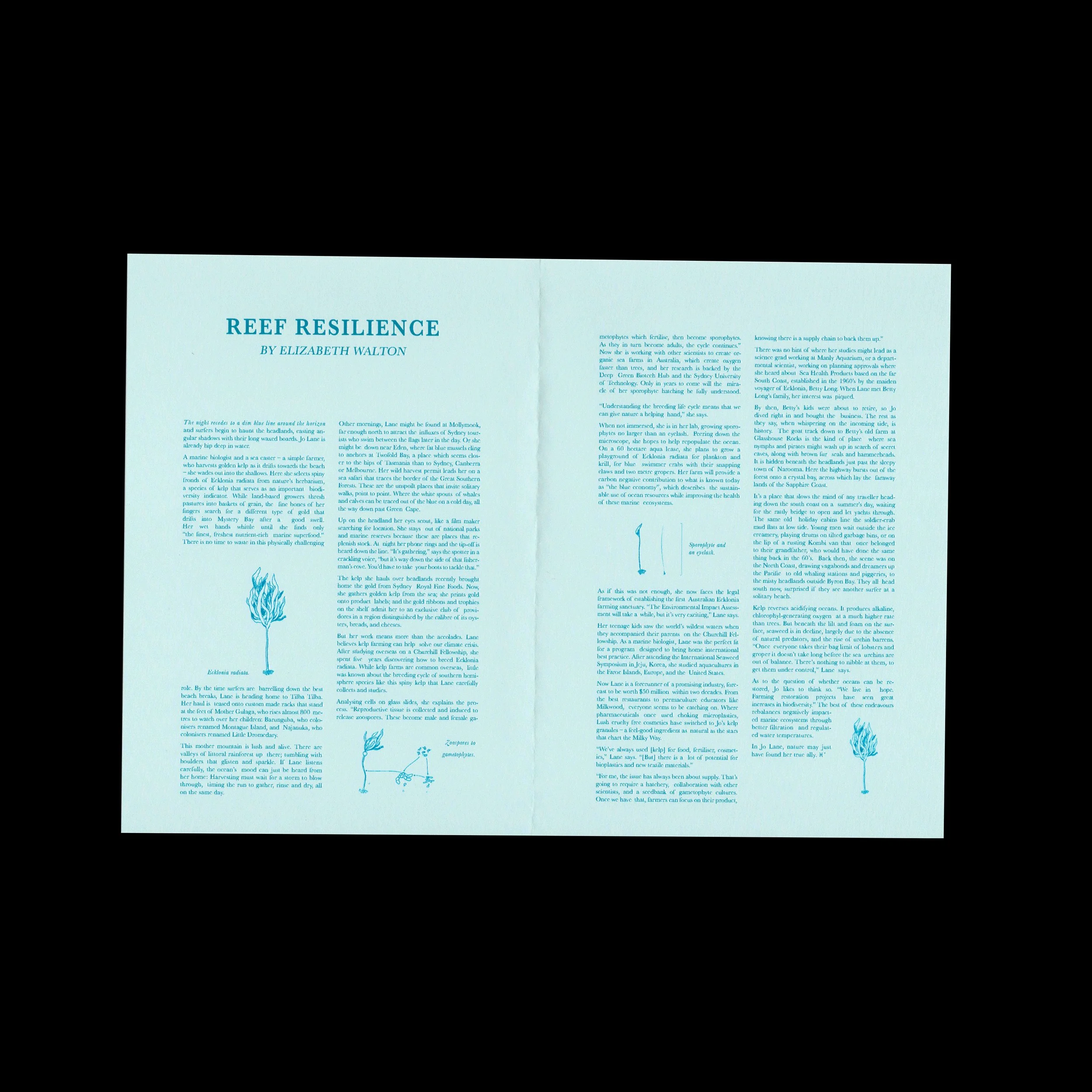 Reef Resilience by Elizabeth Walton. Graphic design by Lara Richardson for PETAL Magazine, Volume 1.