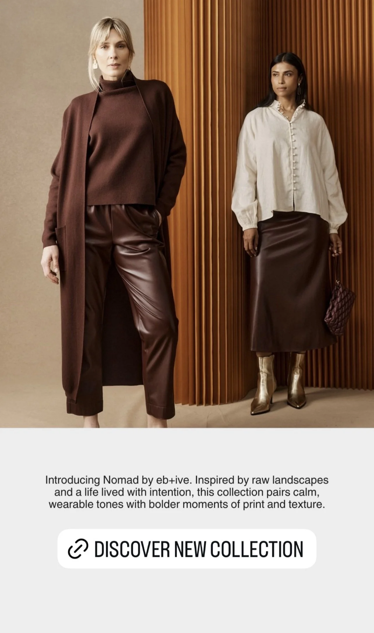 During my time as Marketing Coordinator at TKC, I was involved in the end-to-end process of multiple collection launches. For eb+ive AW26, I was able to see content through from day of shoot to day of launch. My role involved capturing BTS footage, directing models, assisting styling to briefing emails, web creative and ideating and generating all social content, planning and scheduling. This was a very rewarding experience, amidst busy BAU.