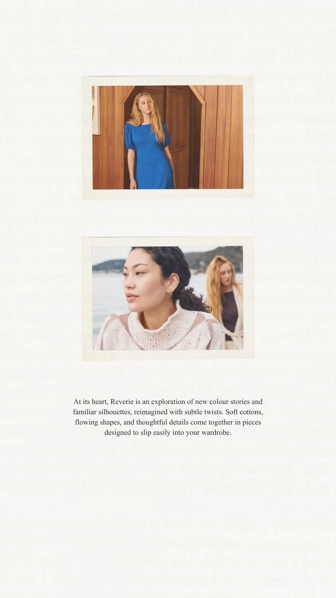 For Reverie, I was involved from the day of the shoot through to launch. I captured BTS moments, helped direct models and support styling on set, then took that raw material and shaped it into the story across every touchpoint. I briefed and built email and web creative, wrote and refined messaging, and planned, designed and scheduled the social rollout so it all felt consistent and intentional.